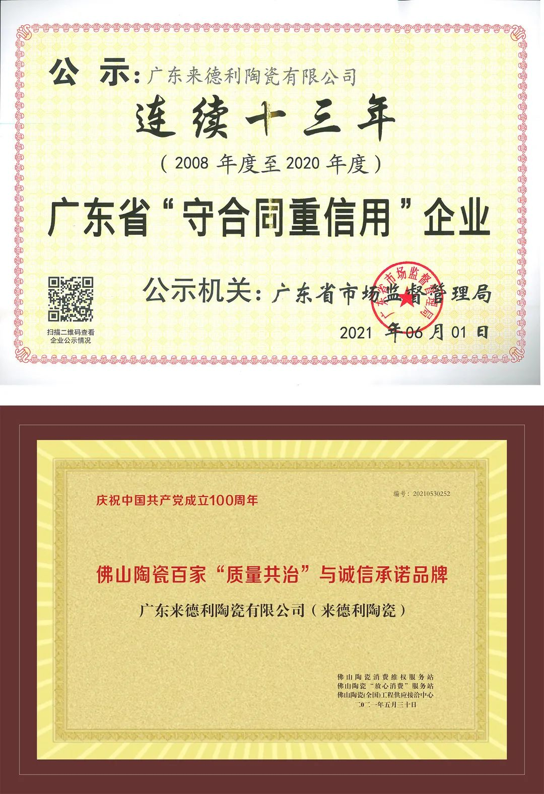 15年以来,尊龙凯时平台入口陶瓷凭借过硬的产品质量,获得众多用户的信赖,最近更是一举拿下“陶瓷一线品牌”、“质量共治与诚信承诺品牌”、“连续十三年广东省守合同信用企业”等奖项,是对尊龙凯时平台入口陶瓷的高度肯定。