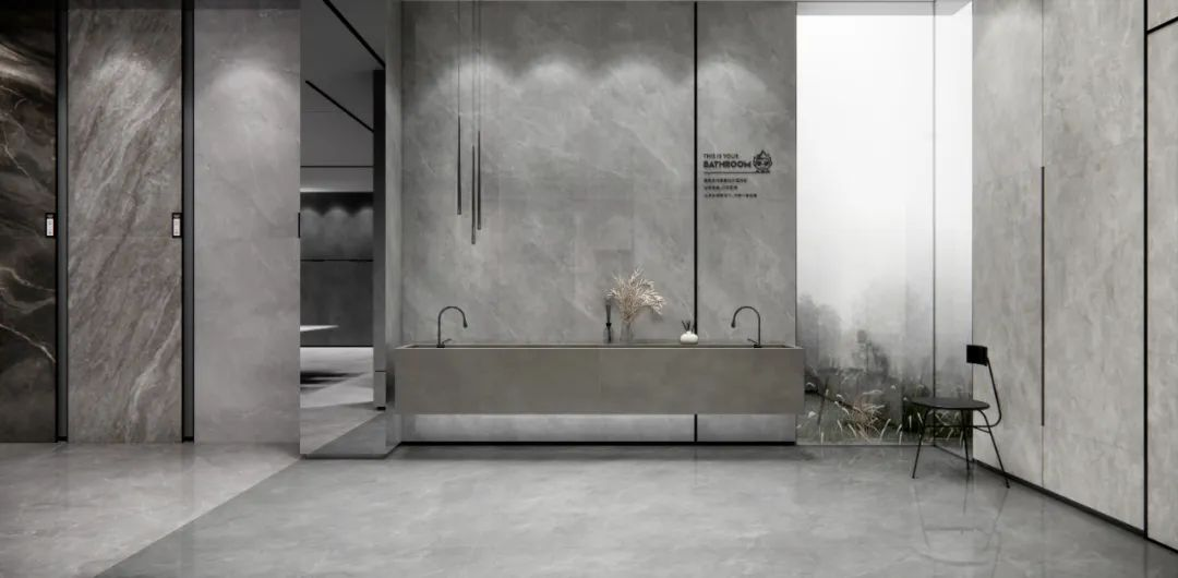 石材带来一丝冷冽刚硬的气息,无可避免,但设计师着手结合中性色调与柔和釉面,中和了其中的尖锐,同时随着审美的融合发展,极简的设计被重新演绎为更加温暖的氛围,为空间注入一份自然生机。