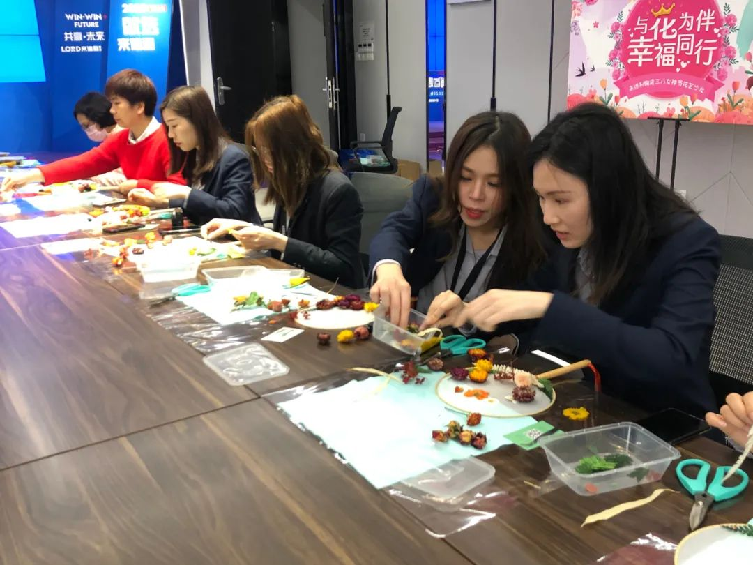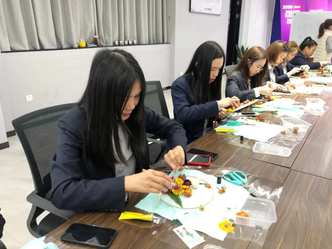 “与花为伴·幸福同行”花艺手作活动现场,老师为大家讲述永生花的由来、制作过程、特点、用途及其保养方法,各位女神聚精会神、热情高涨、跃跃欲试。