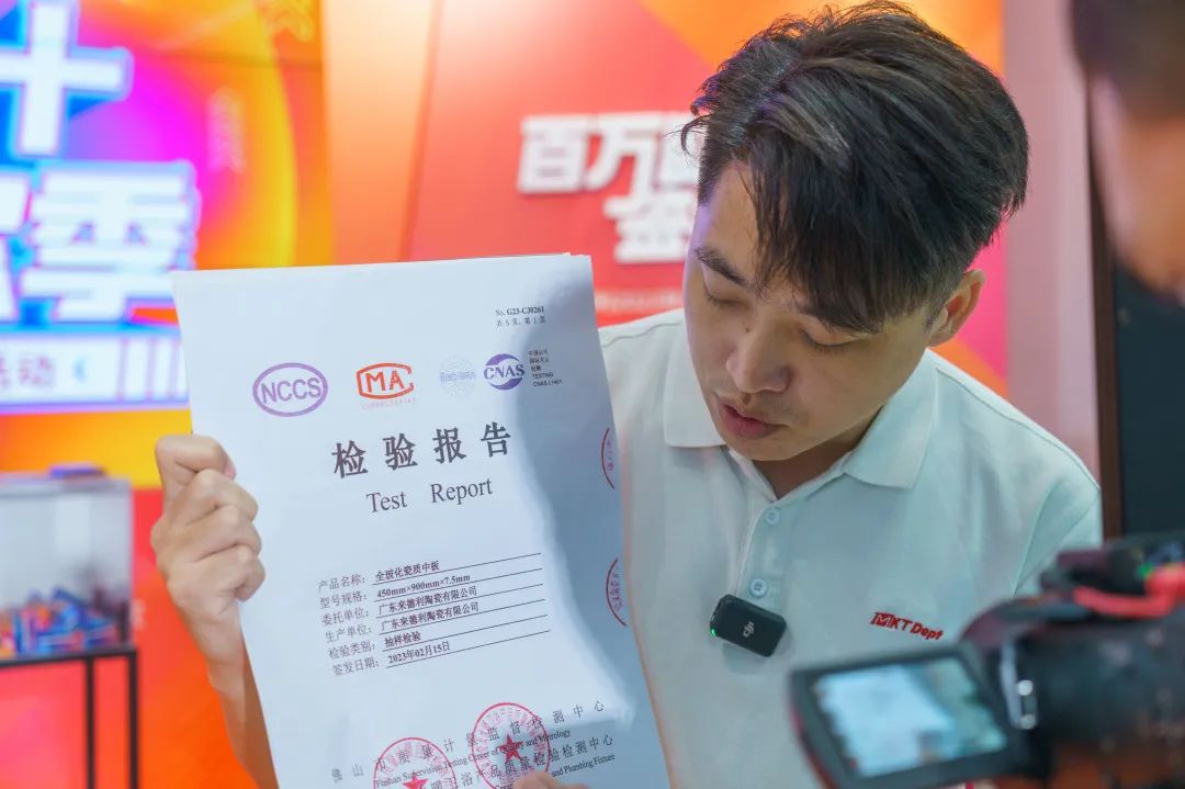尊龙凯时平台入口作为扎根佛山多年的本土品牌,以“正宗广东砖”著称。但很多消费者仍然不懂如何辨别广东砖,为此,在10月24日直播期间,集团新媒体运营师曹文宇向大家详细解读了纸箱的标识与检测报告的查看,从多方面教大家如何辨别正宗广东砖以及查验产品质量。