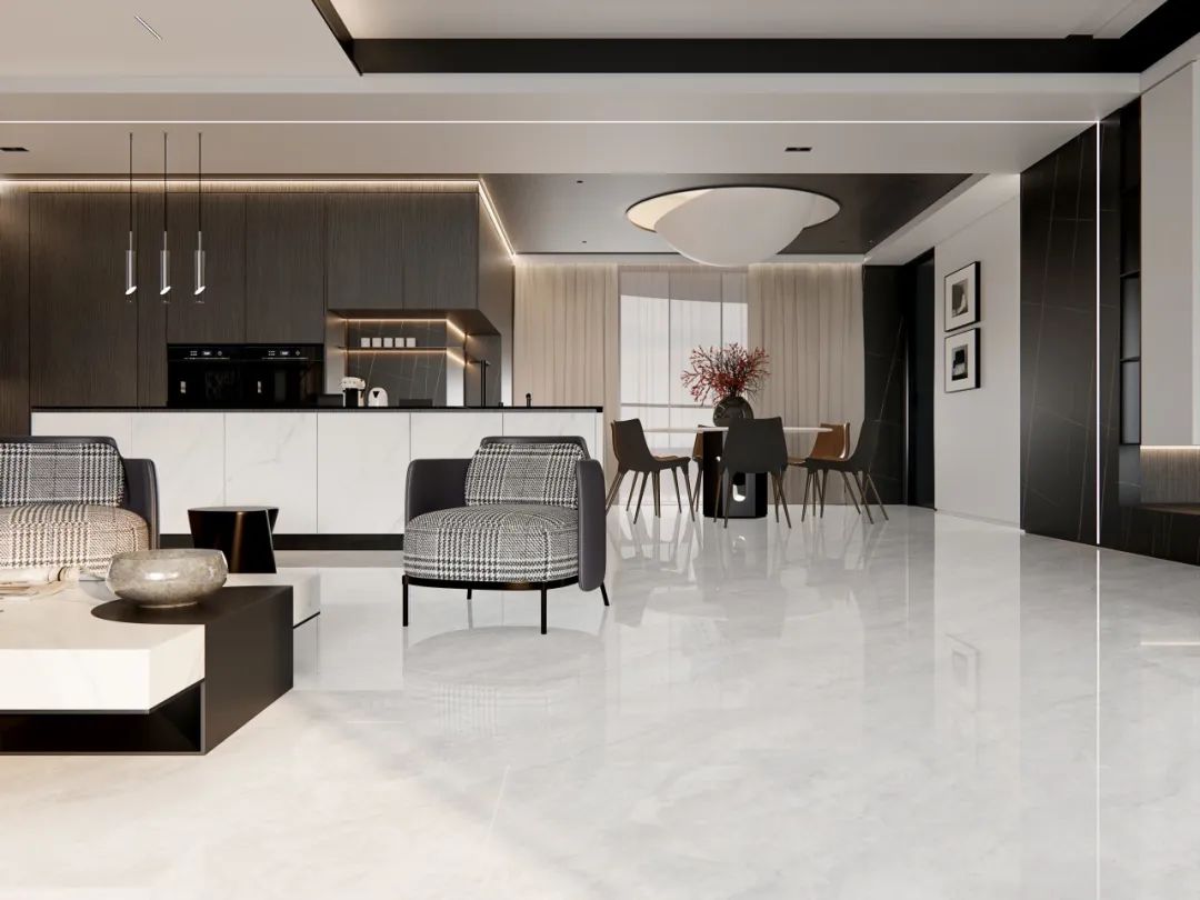 干粒亮抛工艺打造明亮通透质感面,光线经过釉面漫反射而不刺目,在保证亮面的同时光感舒适,极大拓展空间视觉效果。