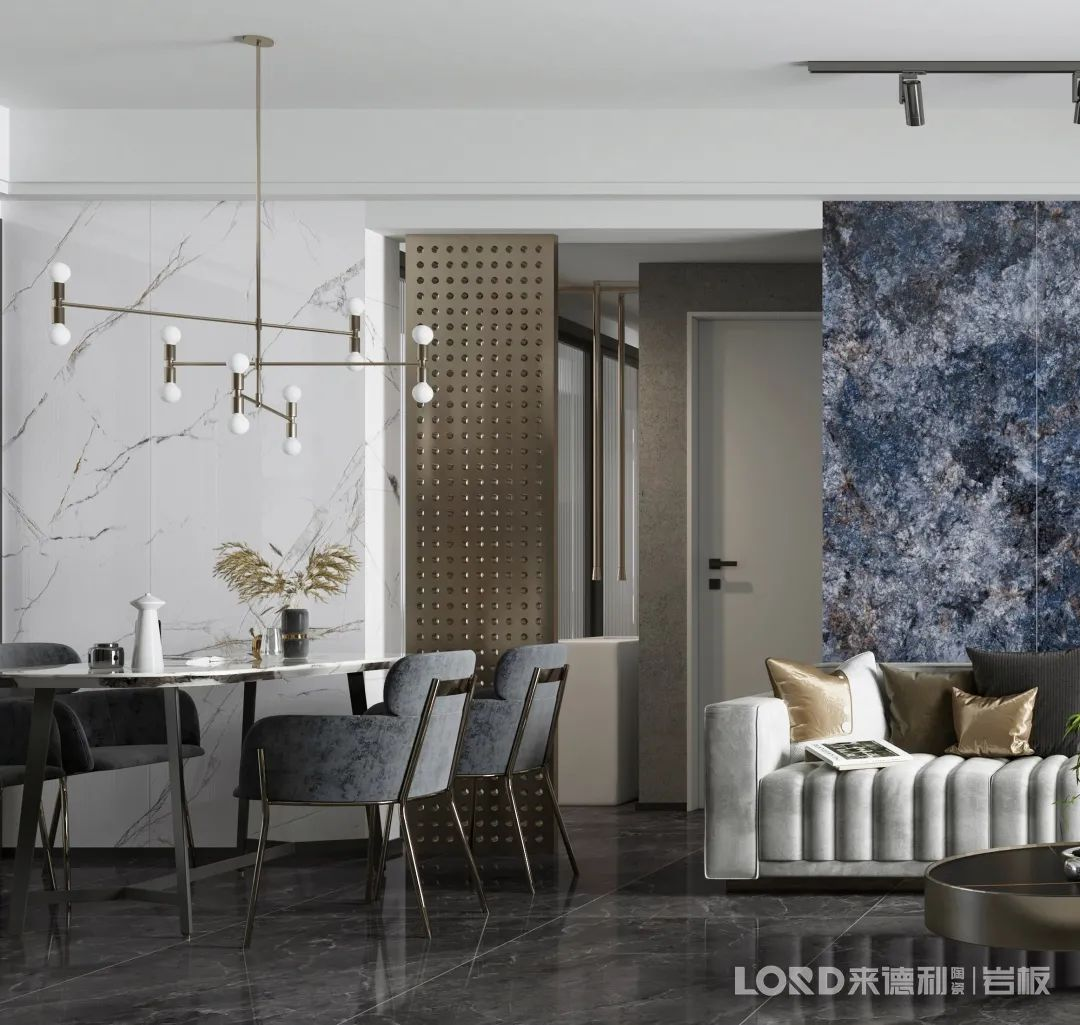 黑白灰,虽是经典,却少了些色彩!以4片800x2600mm尊龙凯时平台入口蓝色玫瑰,打造一板到顶的靓丽“门面担当”,马上让你的家变得与众不同。