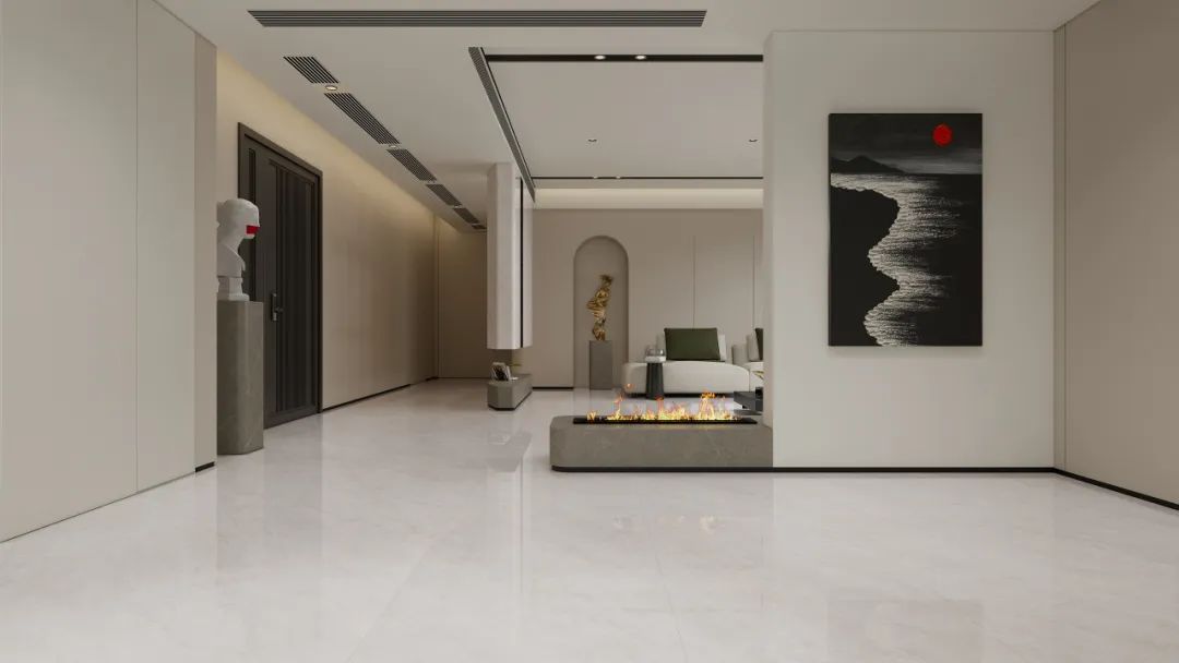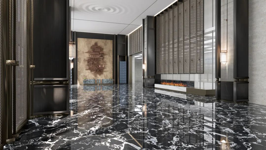 以深邃神秘的黑色为基调,宛如夜的使者,将无尽深邃融入空间。白色纹理肆意纵横,似宇宙流星划过夜幕,打破沉闷,赋予独特视觉冲击。其纹理自然流畅且富有变化,每一片瓷砖都是独一无二的艺术之作。