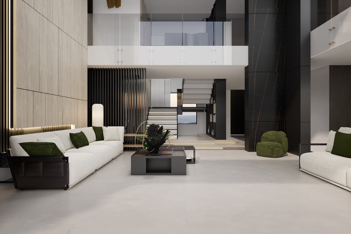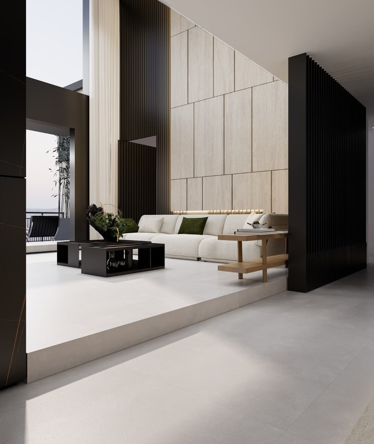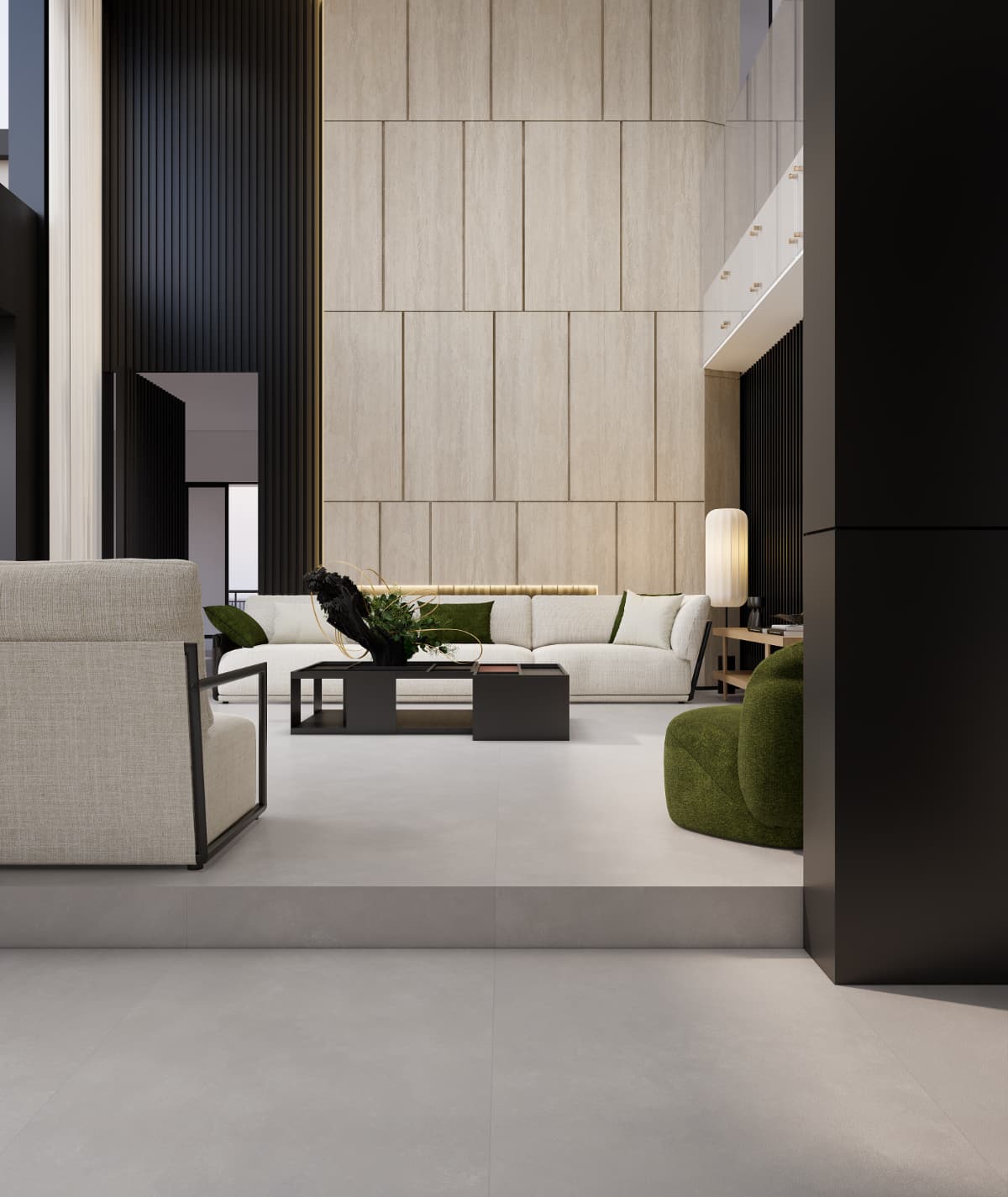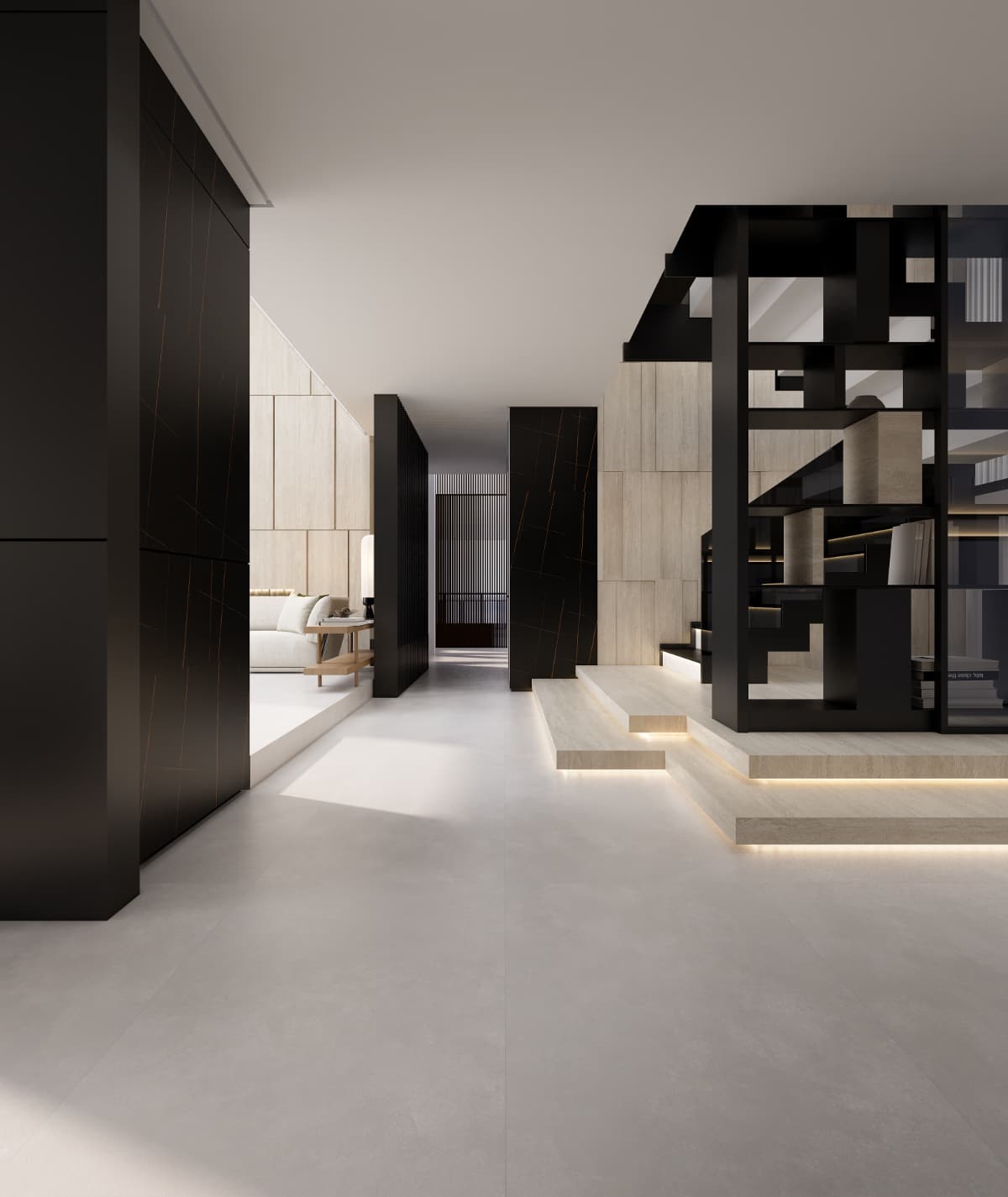 它以独特的浅灰色调为底色,恰似雨后天边弥漫的薄霭,带着一丝清冷与静谧,为空间营造出沉稳而不失优雅的氛围。表面的纹理细腻而富有变化,似苍穹中被微风吹拂的云层,轻柔且舒展 ,不着痕迹地为砖面增添了丰富的层次感。