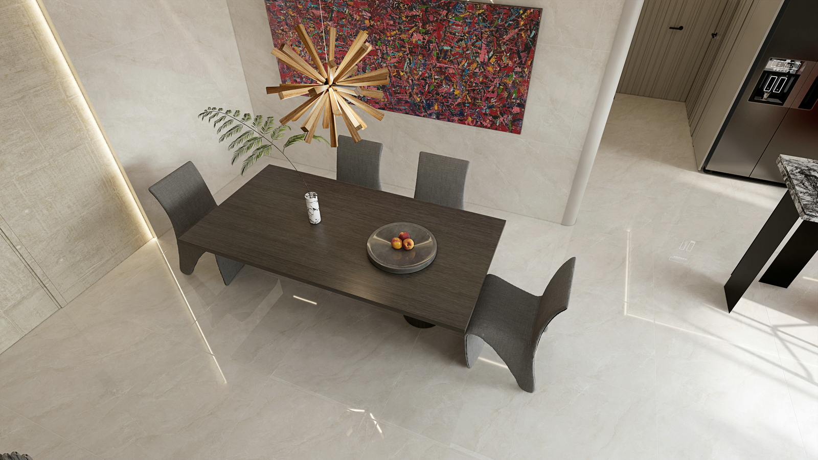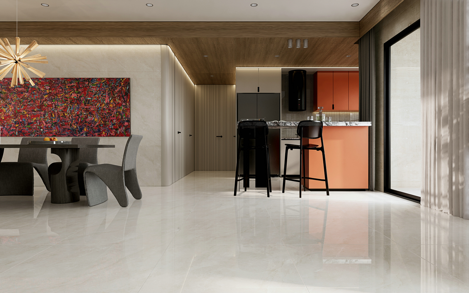 米黄色调自带温馨感与亲和力,近似底色的石纹在不同灰度间和谐变幻,低调而不失奢华气质,细微之处窥见奢石风范。